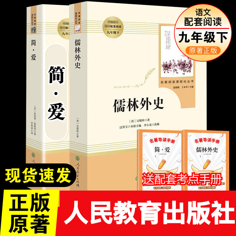 天猫简爱和儒林外史正版原著九年级下册人民教育出版社人教版原著正版语文配套课程化配套中国古典文学讽刺小说九年级下课外阅读书目