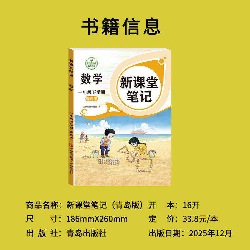 《青岛版数学课堂笔记2026春》专为三至六年级学生设计,同步青岛版数学教材下册,涵盖重点知识梳理、例题解析与随堂练习,助力高效预习与复习。配套《一二年级语文人教版课本同步笔记》,全面覆盖字词、课文理解与语文要素,夯实基础。全书采用“黄冈学霸”学习法,结构清晰、要点突出,结合教材全解读理念,帮助学生掌握核心考点,提升学习效率。适合小学生日常随堂使用,是课堂学习、家庭辅导的理想辅助资料,让孩子轻松跟进度、提成绩,培养自主学习能力。