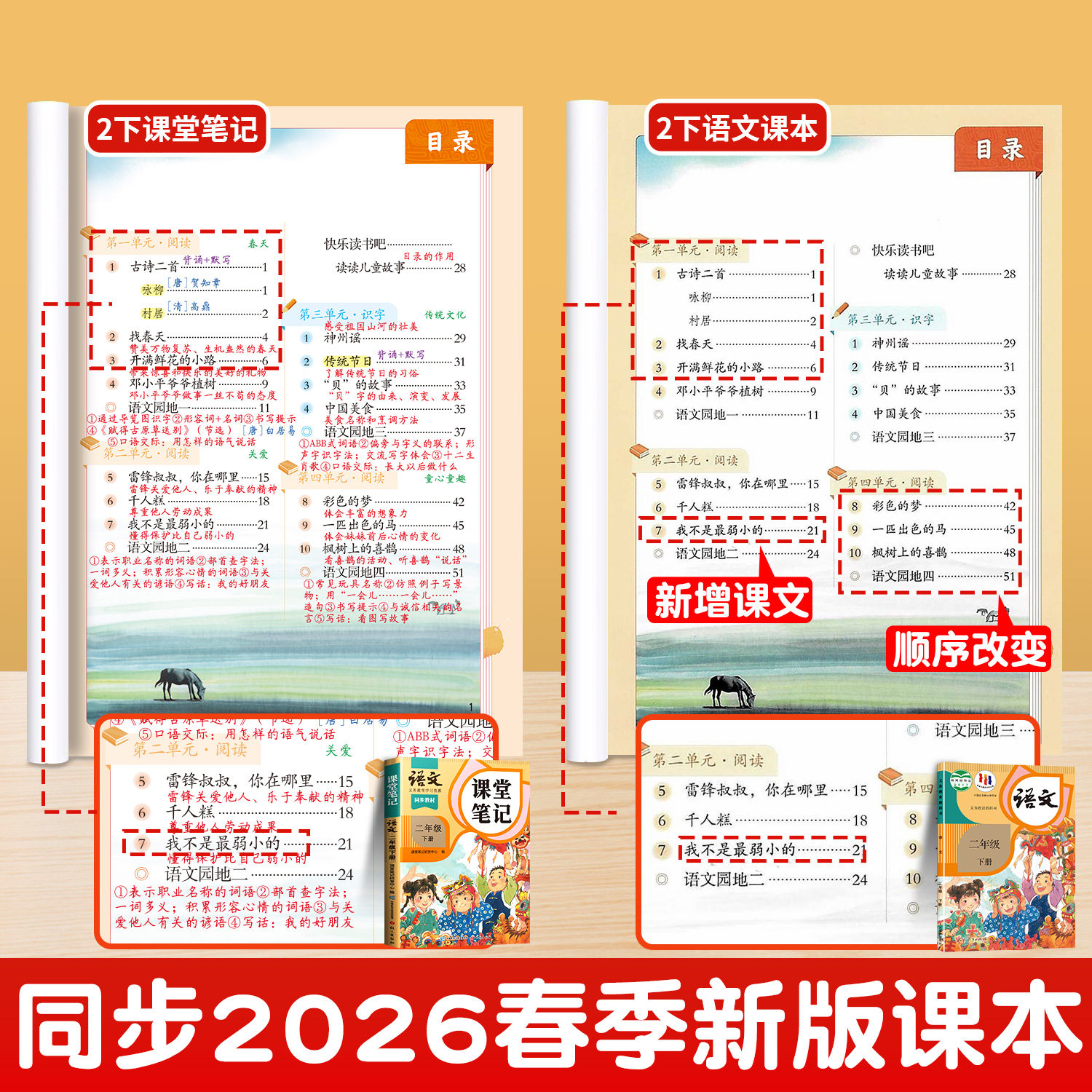 天猫2026年春季适用二年级下册语文数学英语新课本全套书同步人教版上册教材教科书下学期语文随堂笔记课本人教部编译林版学霸课堂笔记