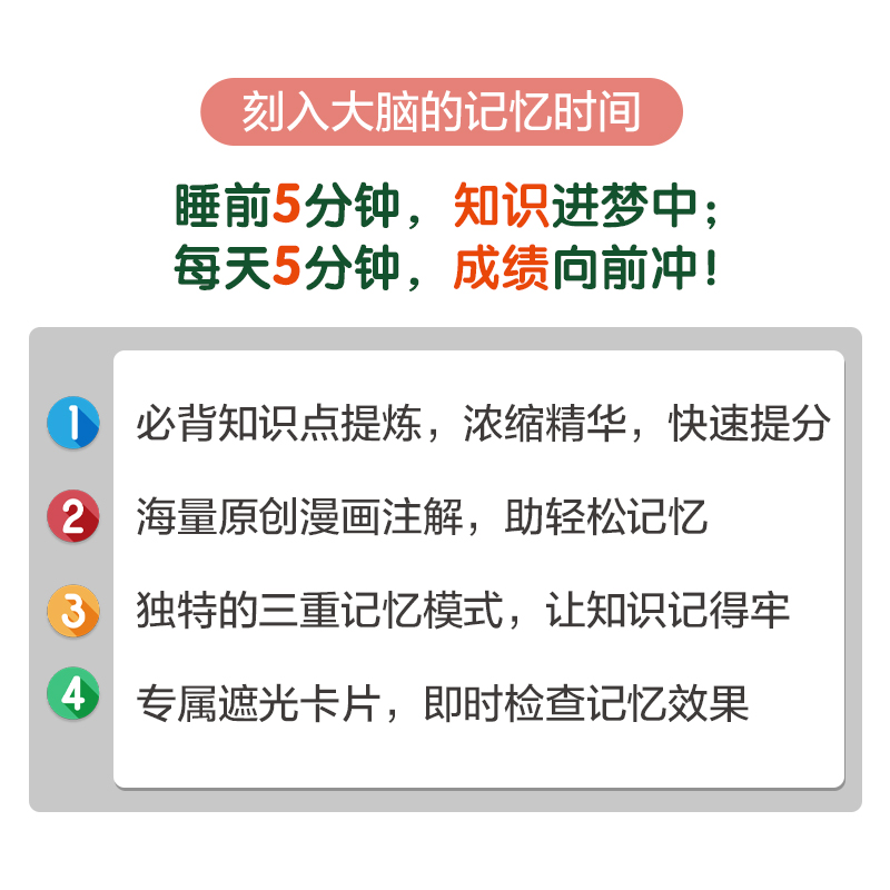 天猫小四门必背知识点睡前五分钟考点暗记2024新初中知识点人教版语文数学英语物理化学生物政治历史地理睡前5分钟考点小升初中小四门