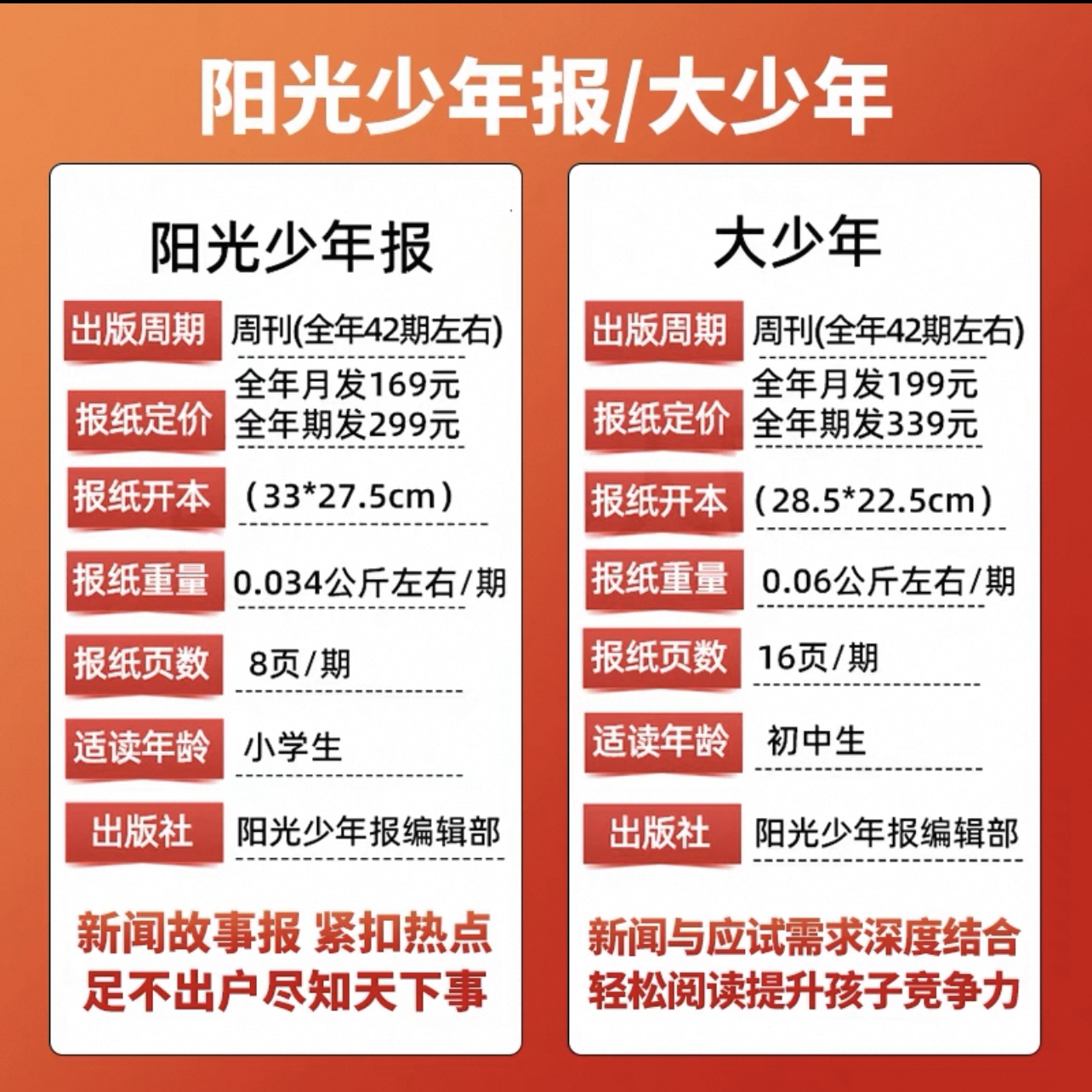 天阳光大少年阳光少年报小学版初中版杂志期刊订阅2026年共42期月月投周周投中学生新闻学习报时事热点资讯阅读报纸写作素材故事积累