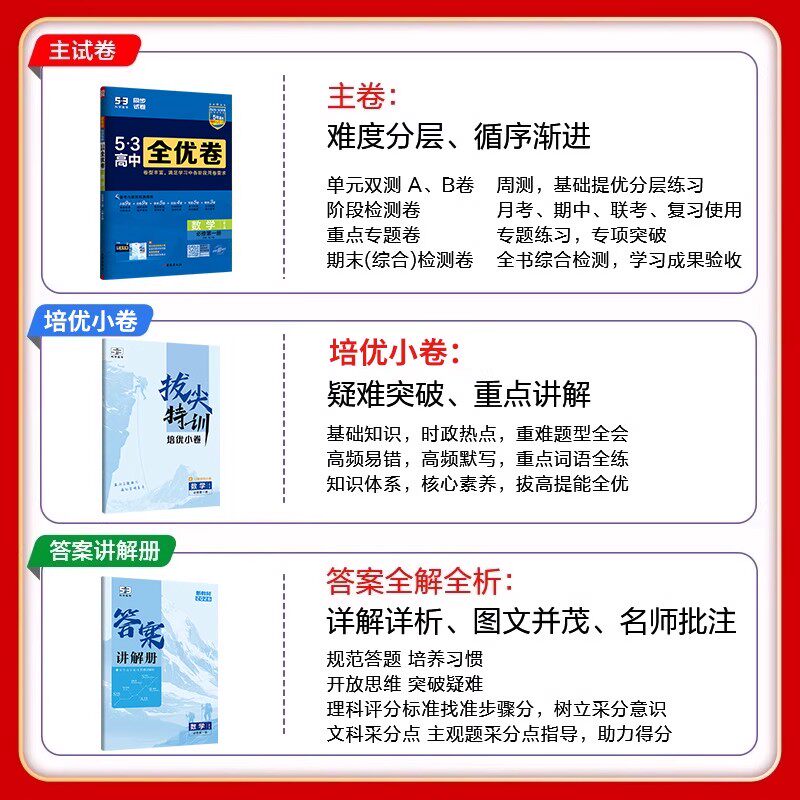 2026新版《53全优卷》高中同步单元检测试卷,紧扣新课标与新教材,覆盖高一、高二语文、数学、英语、物理、化学、生物、政治、历史、地理全学科,包含必修与选择性必修内容。由曲一线名师团队精心编写,题型新颖、难度分层,注重基础知识巩固与核心素养提升。每套试卷紧扣课时进度,强化重点难点,配有详细解析,助力学生高效自测与查漏补缺。作为“必刷题”系列经典之作,本书兼具同步性、系统性与实战性,是高中生夯实基础、提升成绩的理想同步训练工具,广受师生信赖与推荐。