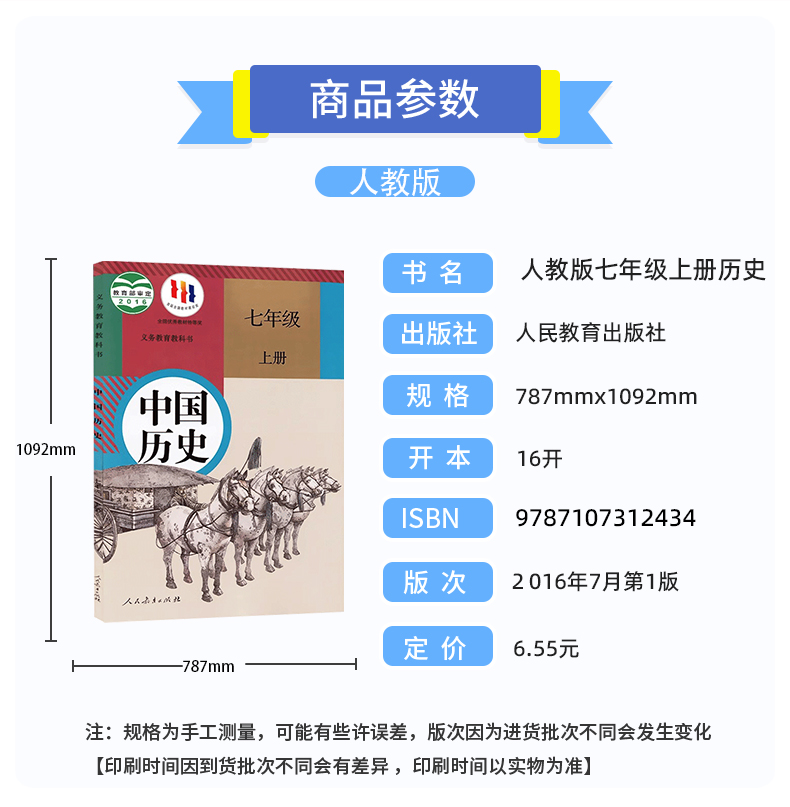 天猫人教版初中7七年级上下册中国历史书全套2两本装人民教育出版社初中1一年级上下学期中国历史教材人教版7七年级历史课本上下册2本