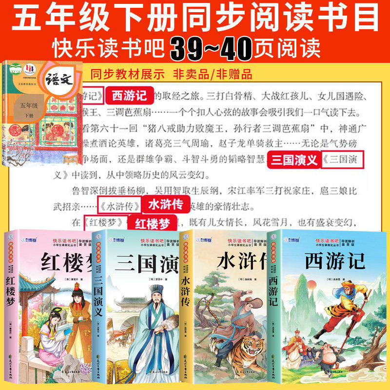 四大名著原著正版五年级下册必读正版的课外书三国演义西游记小学生版青少年版本快乐读书吧五下阅读书籍中国红楼梦水浒传全套书目