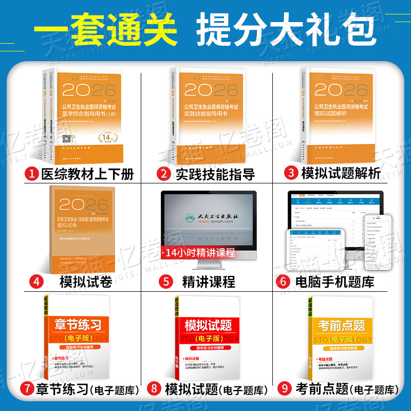 天猫人卫版2026年公共卫生执业医师资格考试医学综合指导用书实践技能模拟试题2025二试公卫执医职业证历年真题试卷助理教材人民出版社