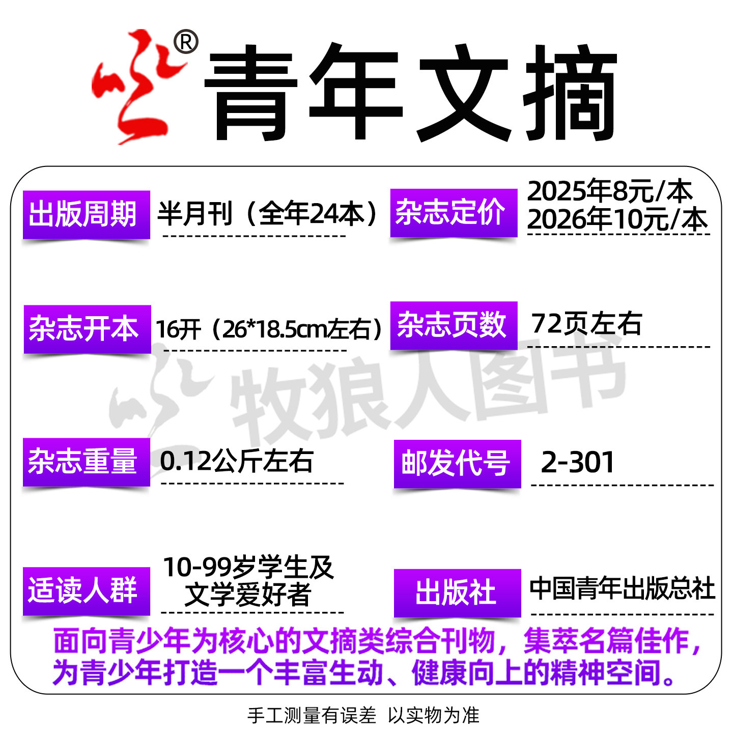 天猫1/2月新【全年订阅组合共48期】读者+青年文摘杂志2026年1-6/7-12月 文学文摘作文素材意林少年版过刊H非2025年合订本