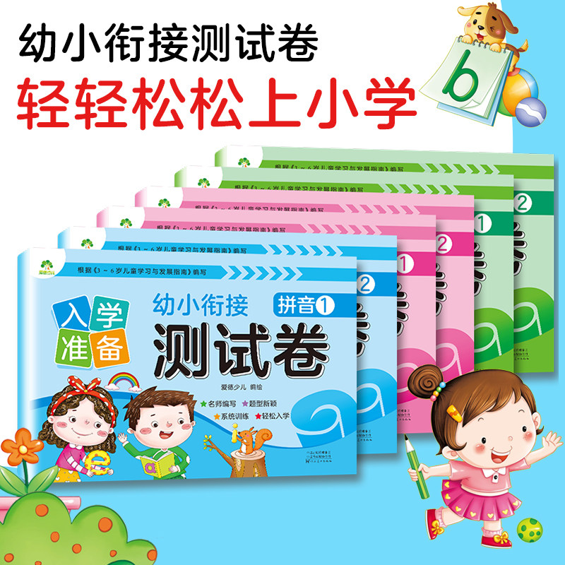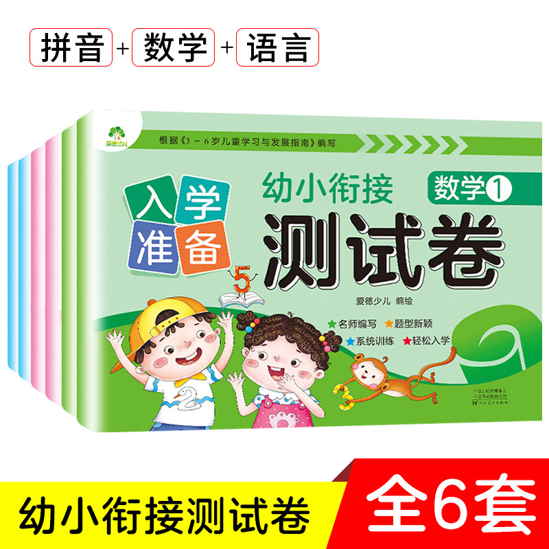 天猫幼小衔接入学准备测试卷全6套专项训练拼音语言数学启蒙练习册一日一练幼儿园升一年级测试卷专项综合训练幼升小必备知识点