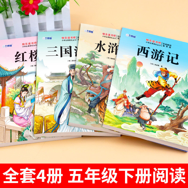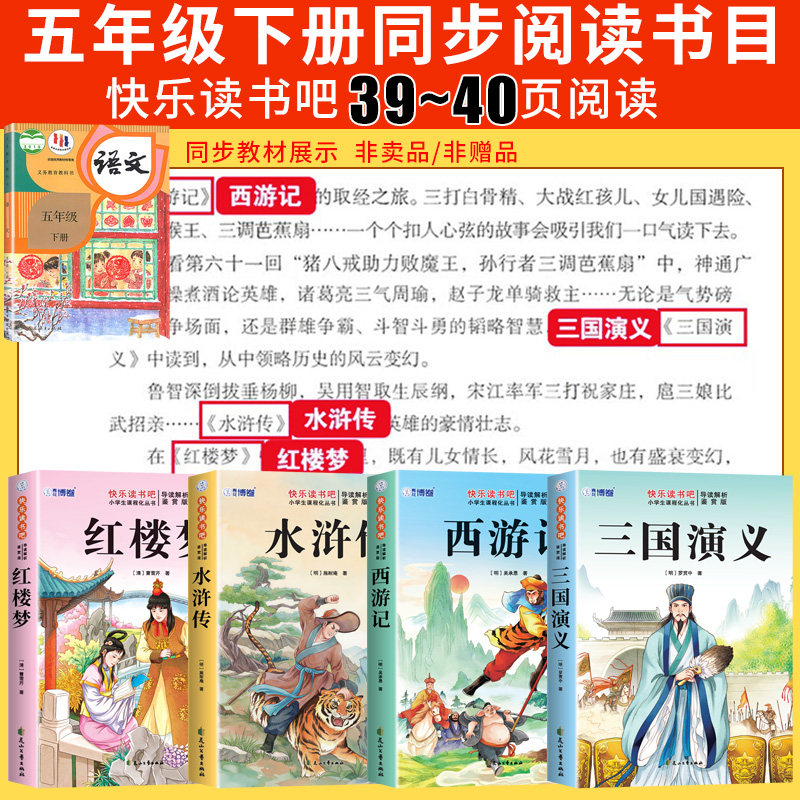 四大名著正版原著五年级下册必读的课外书西游记三国演义小学生版青少年快乐读书吧五六年级课外阅读书籍配套人教版红楼梦水浒传