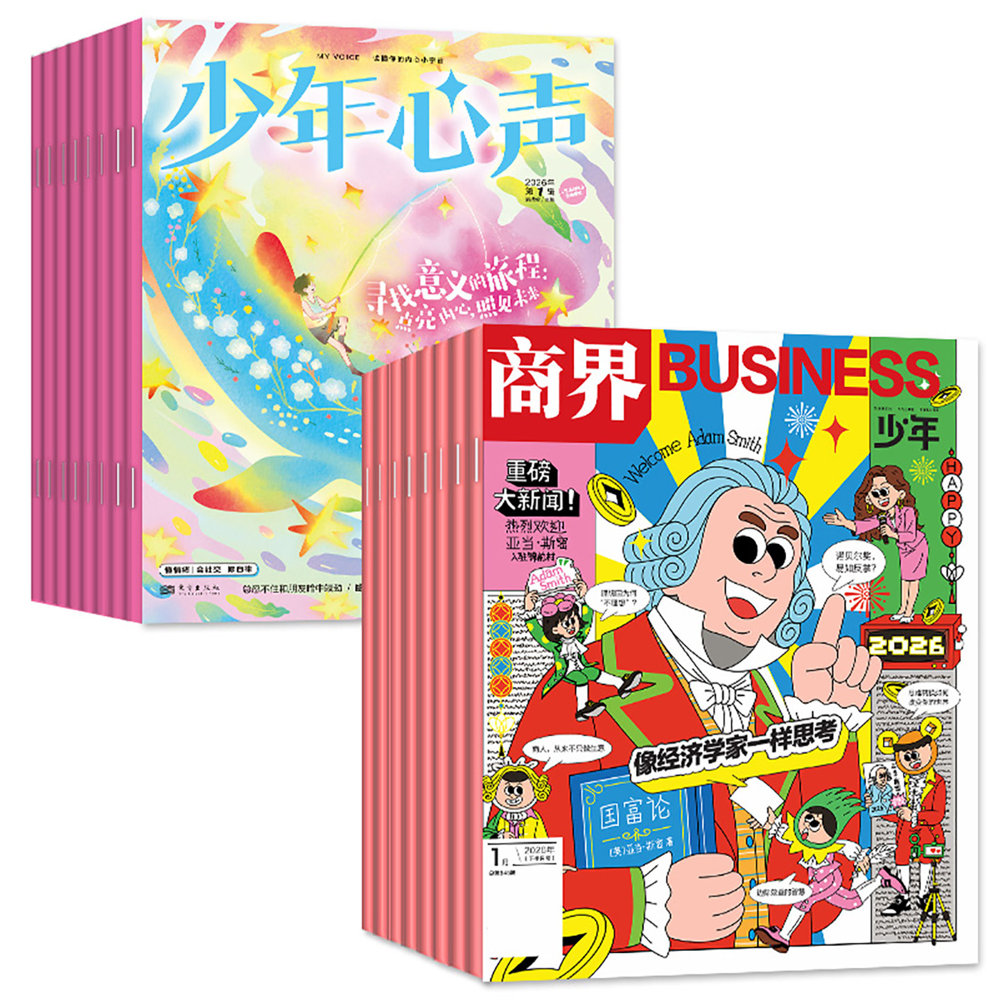 【1月现货·组合全年订阅】《少年心声·恒星时刻》+《商界少年》杂志(2026年1-12月),专为8-15岁初中小学生打造。本组合融合心理健康与财商教育,助力青少年全面成长。《少年心声·恒星时刻》关注青春期心理,引导情绪管理与自我认知;《商界少年》以趣味方式普及财经知识,培养理性思维与理财观念。配套《课堂内外·青少年心理报》,提供实用心理指导。非过刊,每月新鲜送达,内容紧贴时代,语言生动易懂。全年12期,寓教于乐,是孩子成长路上不可或缺的良师益友,助力心智与财商双提升。
