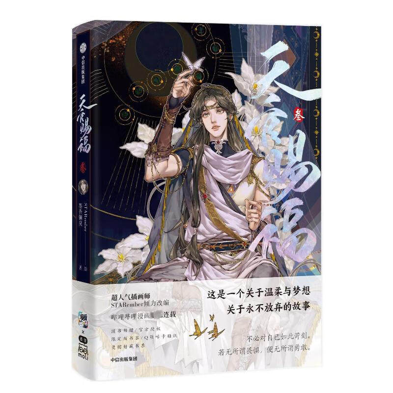 《天官赐福》是墨香铜臭创作的热门耽美小说,讲述了仙乐国太子谢怜历经三次飞升、命运跌宕,与绝境鬼王花城携手揭开尘封真相的奇幻故事。作品融合仙侠、志怪与情感元素,人物刻画细腻,世界观宏大,深受读者喜爱。随书附赠丰富礼品,包括精美书签、角色立牌、海报、贴纸等周边,涵盖谢怜、花城等主要角色形象,极具收藏价值。漫画版在保留原著精髓的基础上,以精美画风还原经典场景,为读者带来沉浸式体验。无论是原著粉丝还是新入坑读者,这套《天官赐福》系列都是不可错过的精品之作。