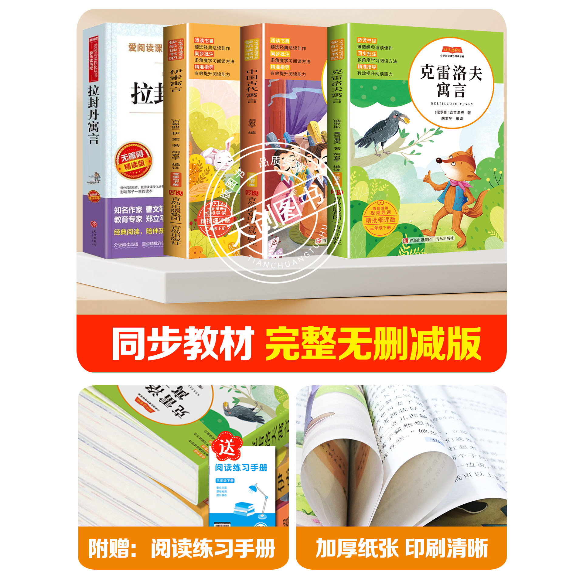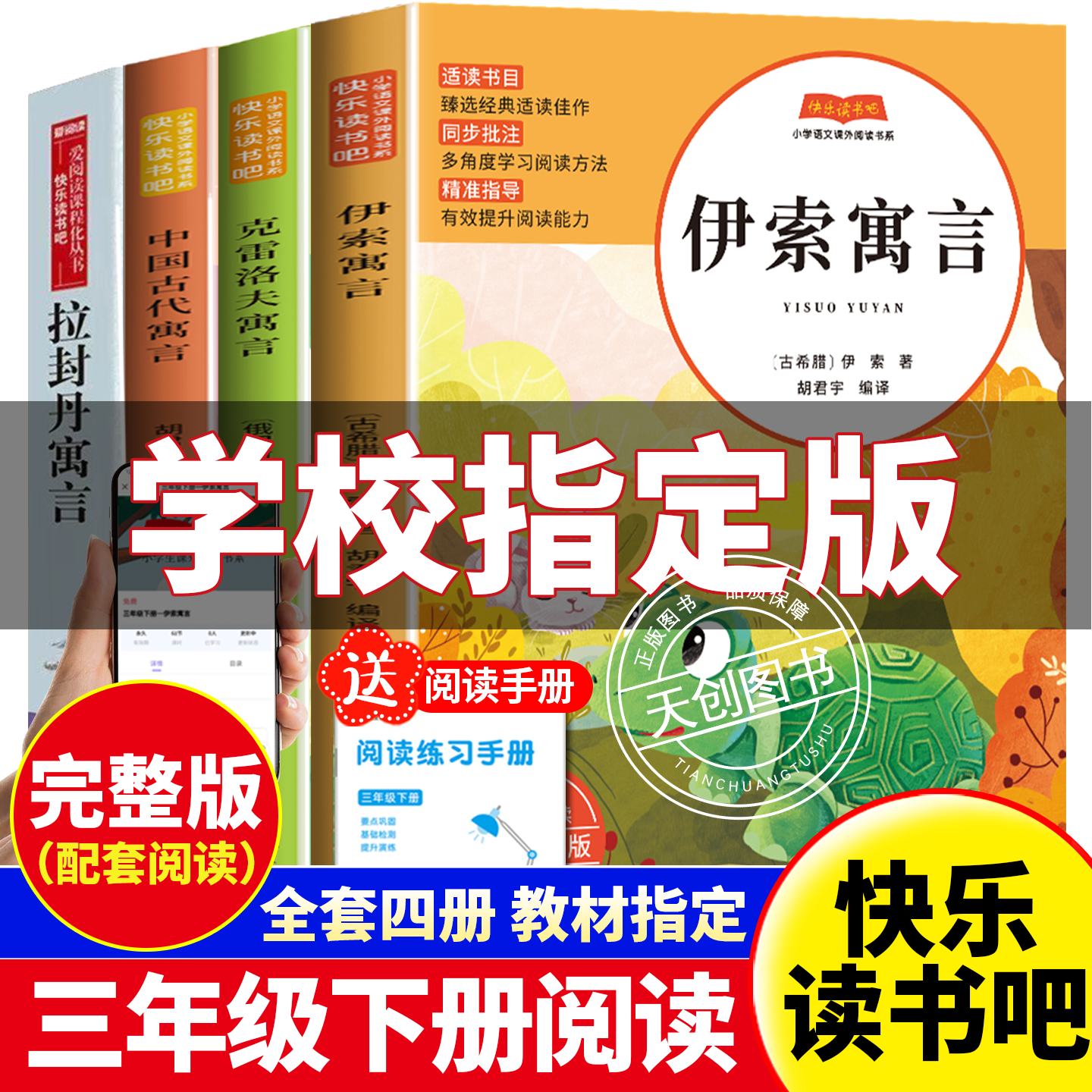 天猫三年级下册快乐读书吧人教版中国古代寓言故事必读课外书全套快乐读书吧伊索寓言克雷洛夫拉封丹寓言书目配套人教版课本社老师推荐