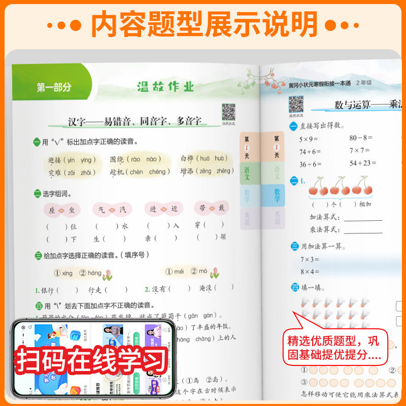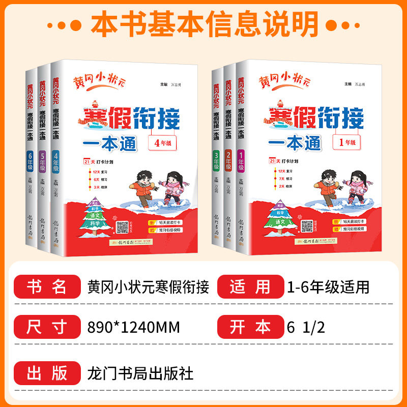 2026新版《黄冈小状元寒假衔接一本通》专为小学一至六年级学生设计,紧扣人教版教材,实现语文、数学、英语三科同步衔接。本书融合上册知识复习与下册新课预习,科学规划寒假学习节奏,帮助学生温故知新、平稳过渡。内容涵盖单元梳理、重难点突破、专项训练及综合测评,题型丰富、梯度合理,兼顾基础巩固与能力提升。配有详细解析,便于学生自查自纠,家长辅导更省心。作为寒假高效学习的得力助手,本书旨在激发学习兴趣,培养自主学习能力,为新学期打下坚实基础,是广大小学生寒假衔接学习的优选练习册。