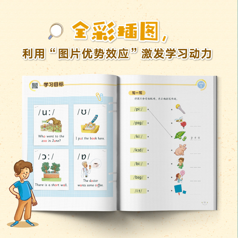 《新东方零基础小学英语国际音标1(图解版)》专为小学生设计,是一本趣味性强、适合英语入门的音标学习教辅书。全书采用全彩插图,将48个国际音标与生动形象的图画结合,帮助孩子直观理解发音部位与技巧。通过自然拼读法,引导孩子掌握字母与音标的对应关系,提升拼读能力。书中设置丰富练习和趣味活动,寓教于乐,激发学习兴趣。配套音频由专业外教录制,发音标准,便于模仿跟读,巩固学习效果。无论是课堂辅助还是家庭自学,本书都是小学生打好英语语音基础的优质选择,让音标学习不再枯燥,轻松开启英语学习之旅。