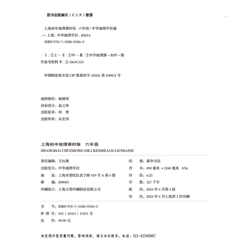 天猫明秀上海初中地理课时练基础版六年级6年级练习题测试题随堂测课后练习知识梳理巩固基础适配上海地理教材附参考答案 中华地图学社