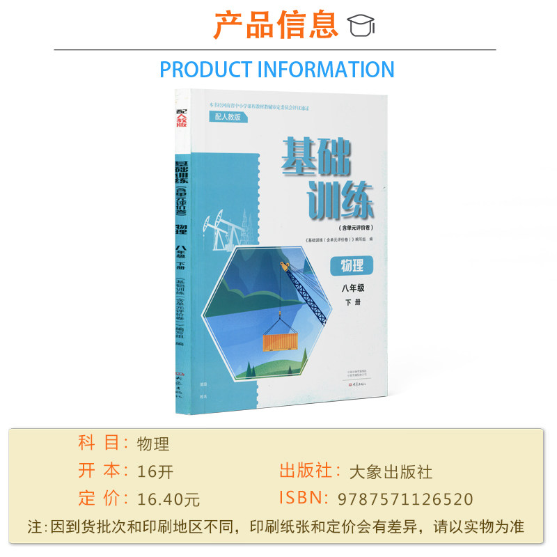 天猫配人教版 初中八年级下册物理 基础训练 物理8下 (含单元评价卷)大象出版社 8年级下册练习册 习题8下人教版物理作业 大象版物理