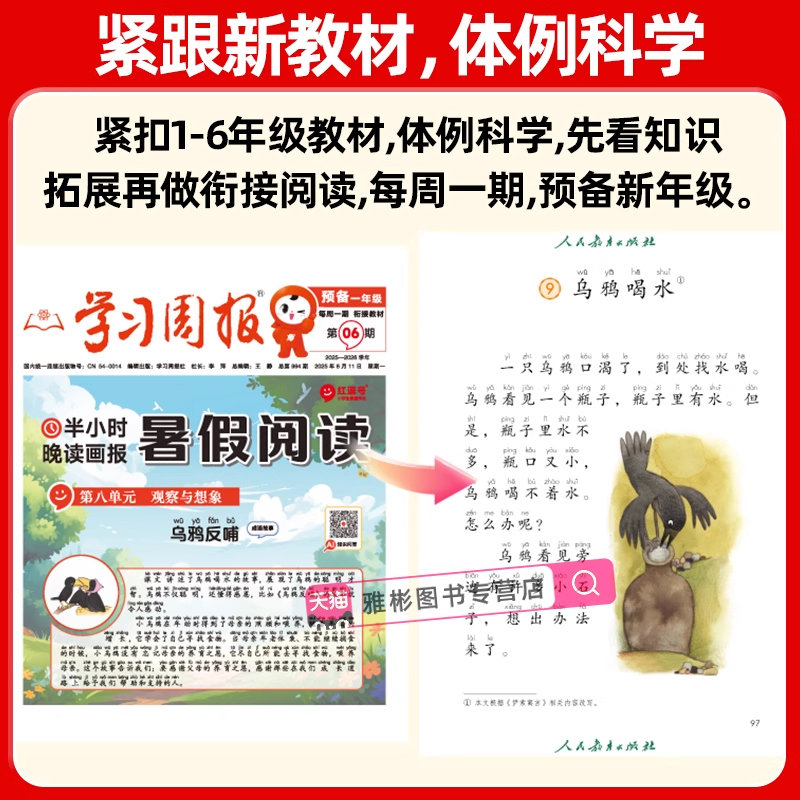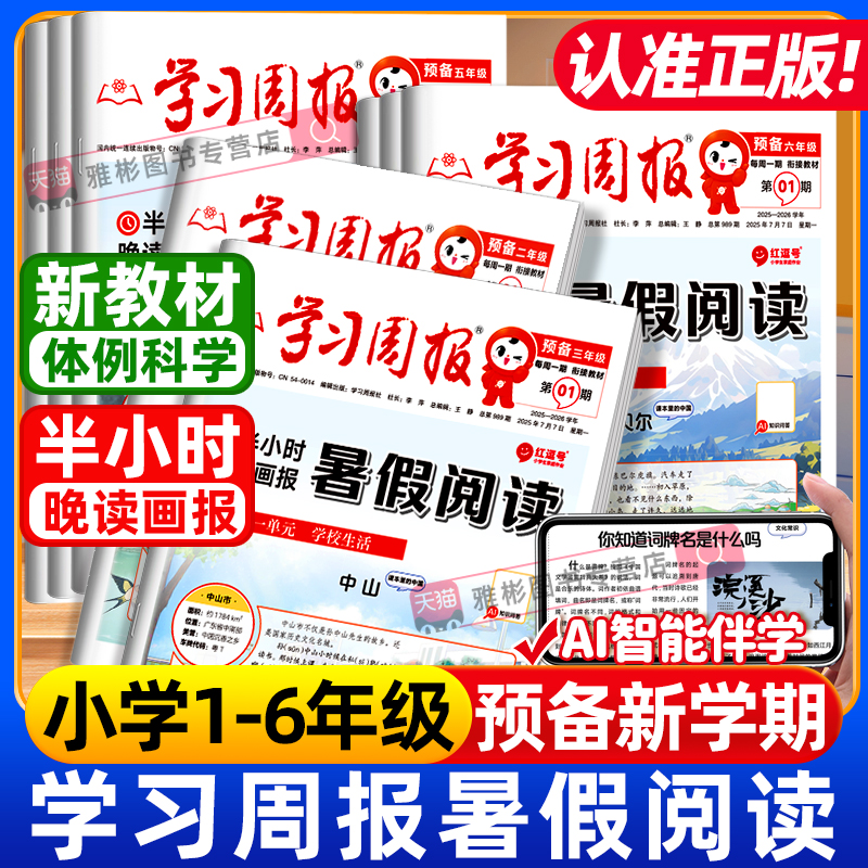 天猫学习周报人教版语文暑假阅读报纸2025年全年/半年订阅春季/秋季学期小学一二三四五六年级基础知识专项训练半小时晚读画报期刊杂志