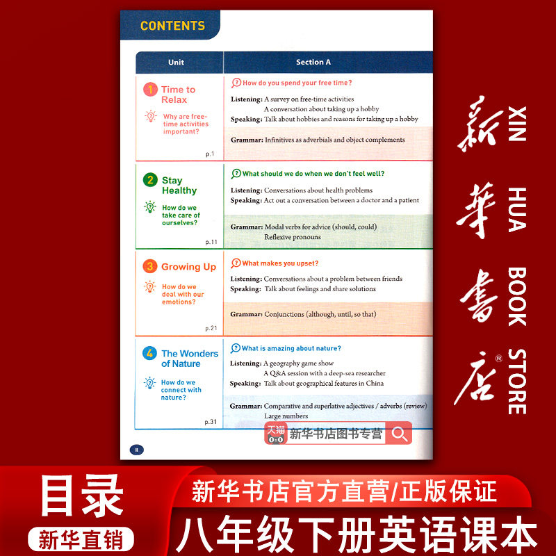 【新华书店正版】初中英语全套人教版教材,涵盖七年级至九年级(初一至初三)上下册,共六册,严格依据国家课程标准编写,内容系统、权威可靠。教材注重语言知识与实际运用相结合,包含听说读写全方位训练,词汇、语法循序渐进,配套插图生动,贴近学生生活。每单元设有主题对话、阅读材料及综合练习,助力夯实基础、提升英语综合能力。由人民教育出版社出版,新华书店正版保障,印刷清晰,装订牢固,是初中生课堂学习与课后复习的理想用书,适用于全国使用人教版教材的地区。