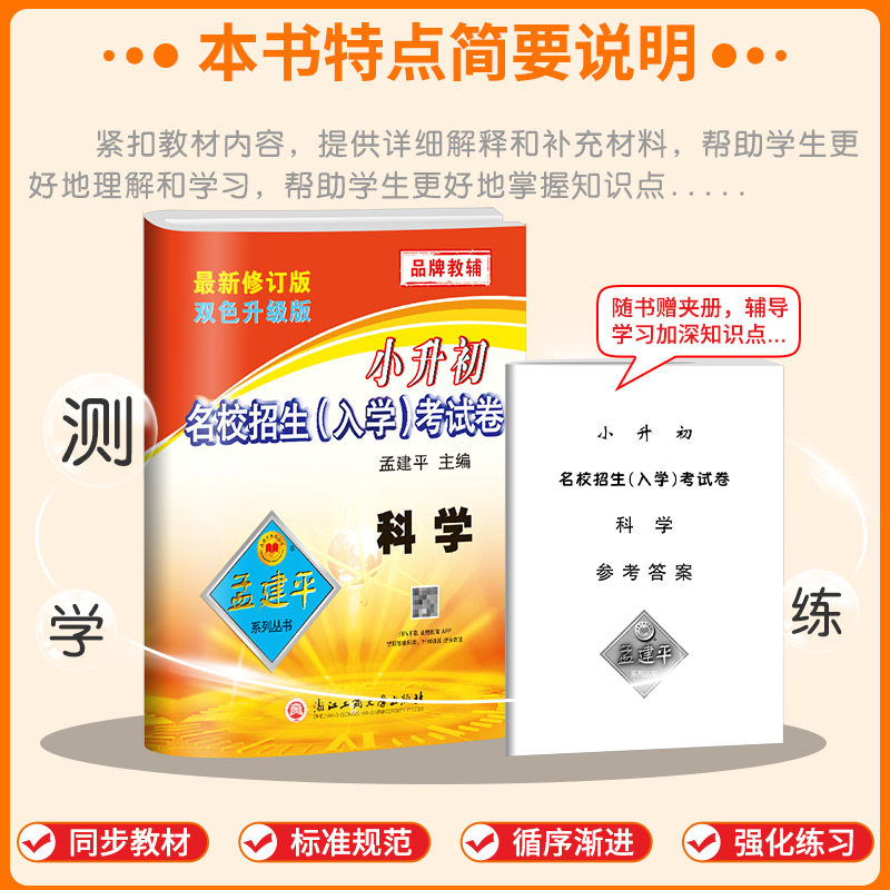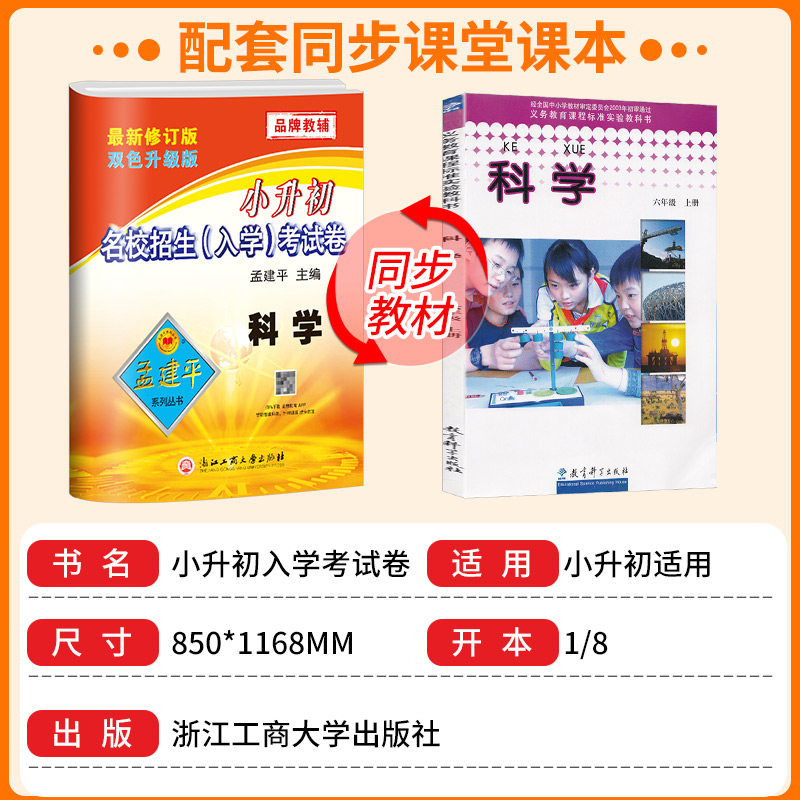天猫浙江专用孟建平 小升初名校招生入学考试卷科学 小学升初中真题模拟试卷暑假作业衔接六年级下册升七年级测试卷考试卷子冲刺必刷题
