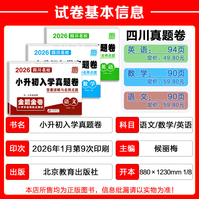 天猫2026四川小升初入学真题卷详解数学语文英语四川十大名校招生真卷小升初模拟试卷小学毕业升学考试历年真题试卷详解 总复习资料