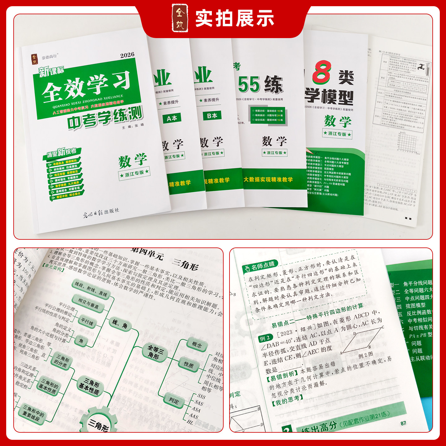 全新上市的《2026春全效学习·中考学练测·数学(浙江专版)》,专为浙江初中生量身打造,紧扣浙江中考最新教材与考纲要求。本书涵盖初中三年核心知识点,系统整合“学—练—测”一体化学习模式,配备智能作业系统,支持对题练习与精准纠错。每道习题均配有详细解答,帮助学生夯实基础、突破难点。同步课堂进度,强化考点训练,全面提升数学综合能力。结合大数据分析,实现个性化学习路径推荐,助力学生高效备考,轻松应对中考挑战,是浙江学子冲刺理想高中的得力助手。