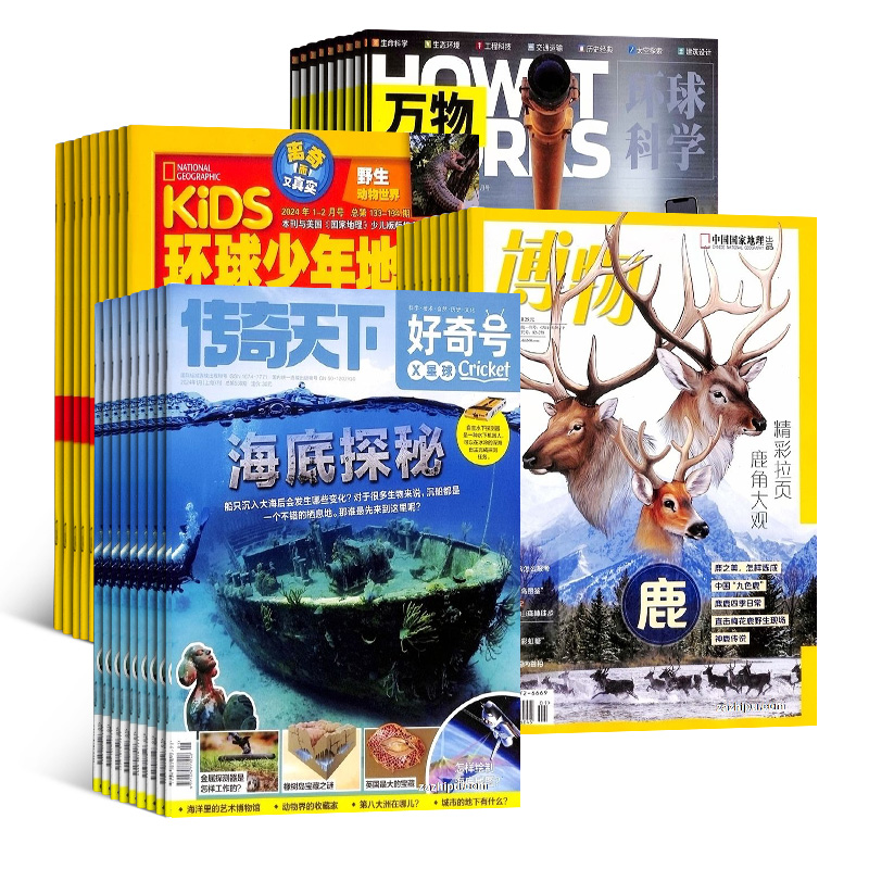 天猫博物+好奇号+环球少年地理+万物杂志组合 2026年1月起订 1年共48期 杂志铺全年订阅 科学历史人文自然生物青少年科普课外读物期刊
