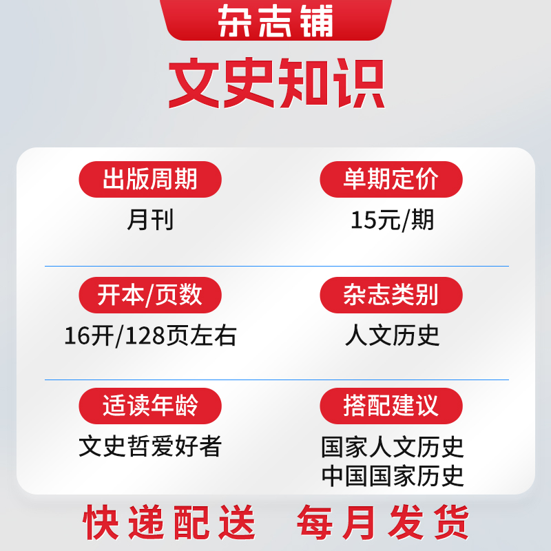 天猫【全年订阅】文史知识杂志 2026年1月起订杂志铺 1年共12期 历史探究 文学期刊 中华传统文化 哲学历史 文科期刊杂志书籍 全年订阅
