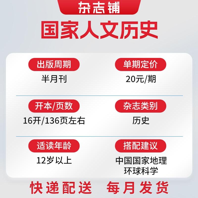 天猫【26/25年全年/半年包邮】国家人文历史杂志订阅 杂志铺 文学历史期刊参考时事政论 青少年高中学生历史知识经典文史参考人物期刊
