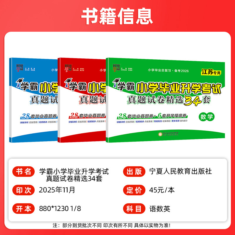 江苏专用备考2026学霸小学毕业升学考试真题试卷精选34套英语小升初语文人教数学苏教版小学六下期中期末试卷测试卷全套卷子总复习