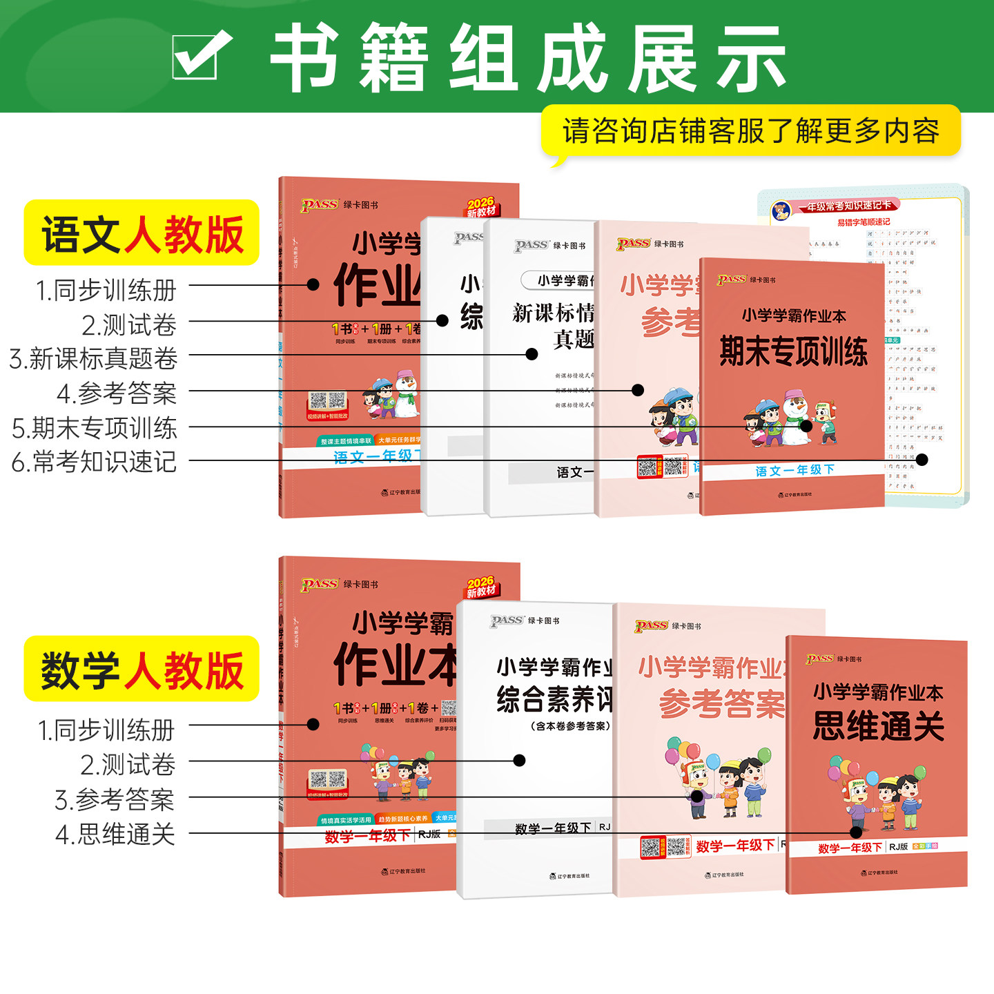 天猫2026春新版绿卡小学学霸作业本一年级语文数学英语课本同步练习上册下册全套人教北师随堂提优训练习题达标测试天天练PASS正版图书