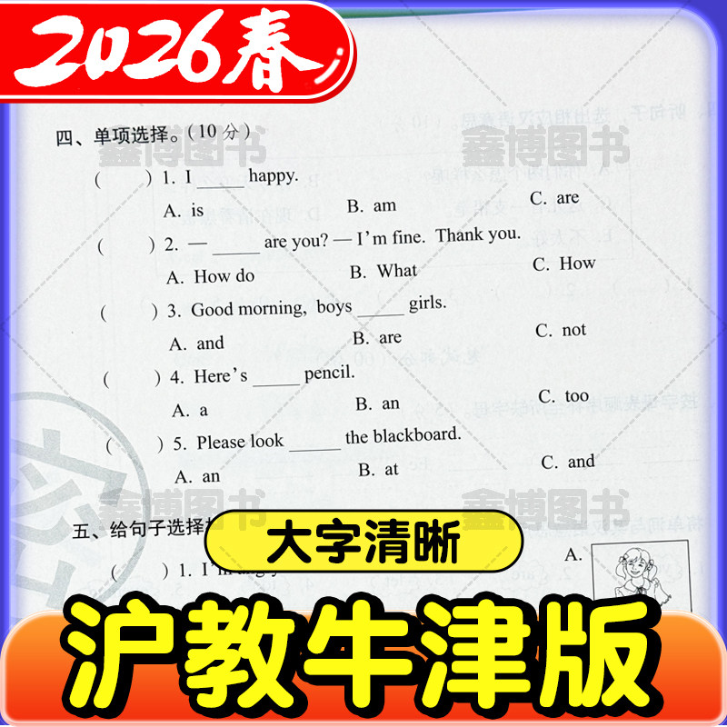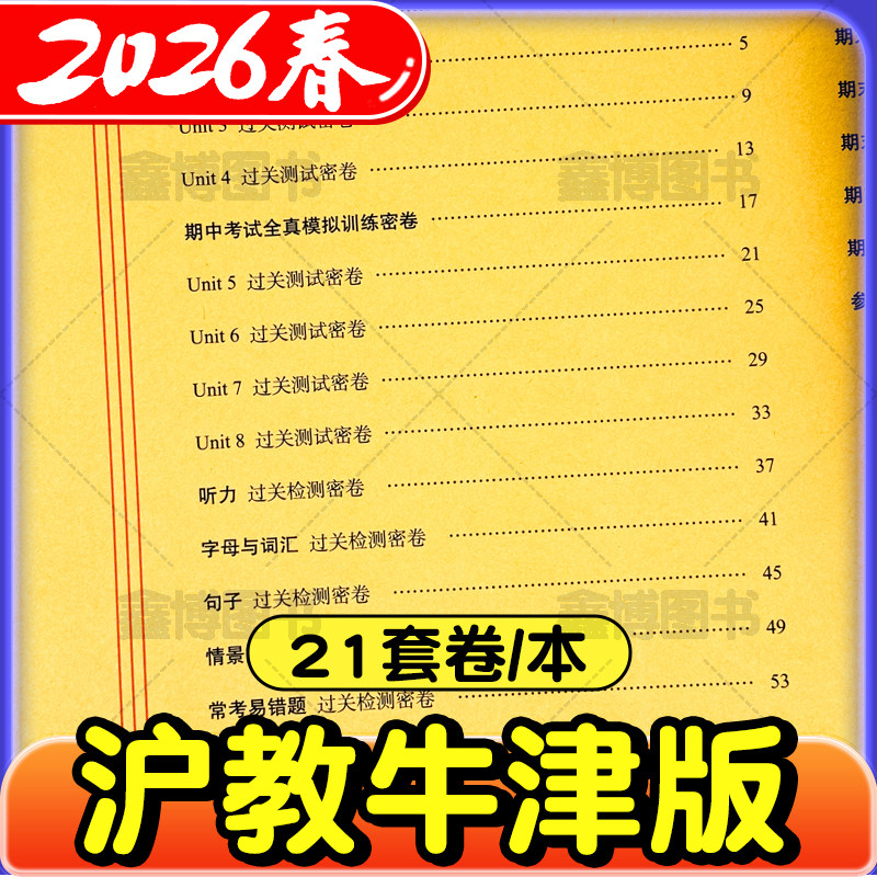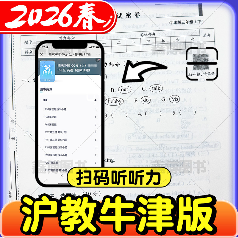 2026春新版沪教牛津版英语试卷(小学一至六年级上下册)由上海教育出版社出版,专为上海及全国使用沪教牛津版教材的学生精心编写。试卷紧扣新课标要求,涵盖各年级上册、下册重点知识,题型丰富多样,包括听力、词汇、句型、阅读与写作等,全面检测学生英语综合能力。每册配有单元练习、期中期末测试卷及期末冲刺100分专项训练,帮助学生夯实基础、提升应试技巧。适用于深圳、沈阳等全国多地小学生同步练习与复习,是提升英语成绩、冲刺满分的优质教辅材料,助力学生在学期末取得理想成绩。
