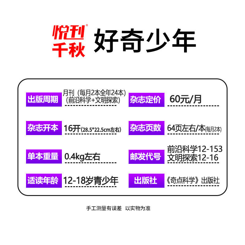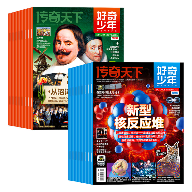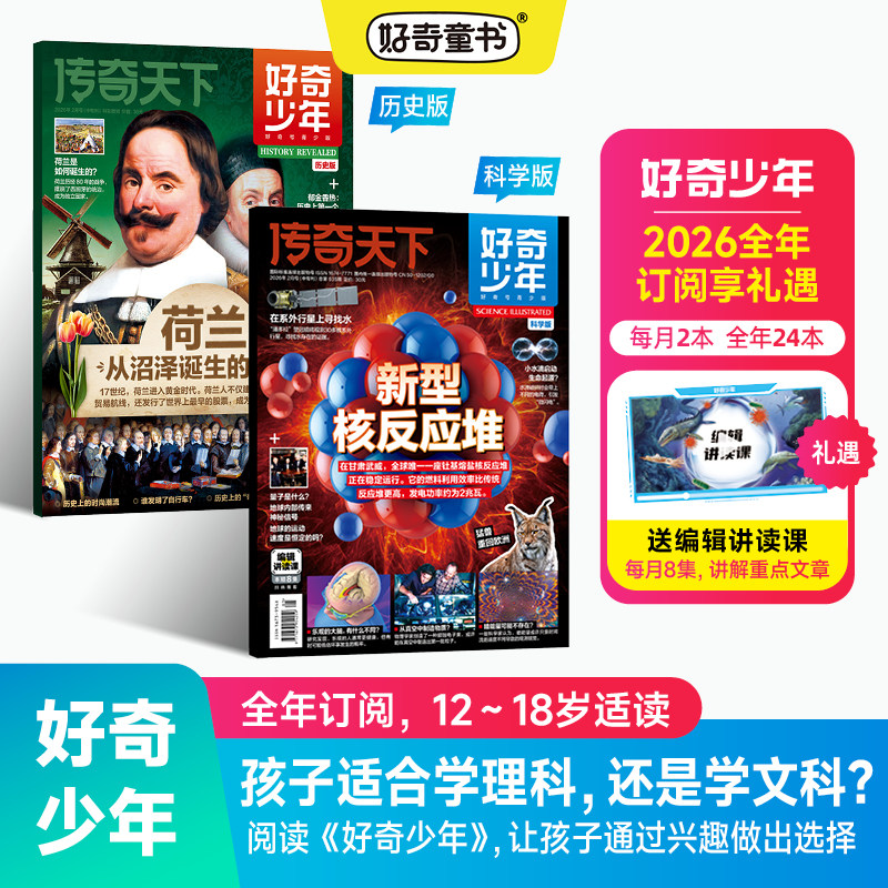天猫好奇少年杂志2026年1/2月新【全年/半年订阅赠视频】原奇点科学2025年1-12月科学版+历史版12-18岁青少年初中小学生好奇号万物