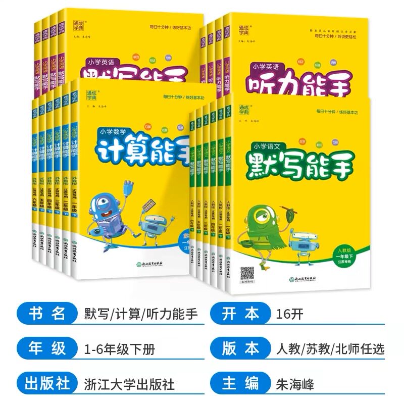 《2026春小学语文英语默写能手·数学计算能手》是一套专为1-6年级学生设计的同步提优练习册,涵盖上下册,适用于江苏及全国各版本教材。丛书紧扣课本知识点,系统编排每日默写与计算训练,内容精炼、题型典型,帮助学生夯实基础、提升能力。语文注重字词句积累与运用,英语强化单词句型记忆,数学聚焦口算笔算与思维拓展。每日一练,省时高效,循序渐进,轻松实现提优目标。配套“通成学典”品牌保障,科学编排,是学生课后巩固、家长辅导、教师检测的理想助手,助力小学生全面提升学科素养。