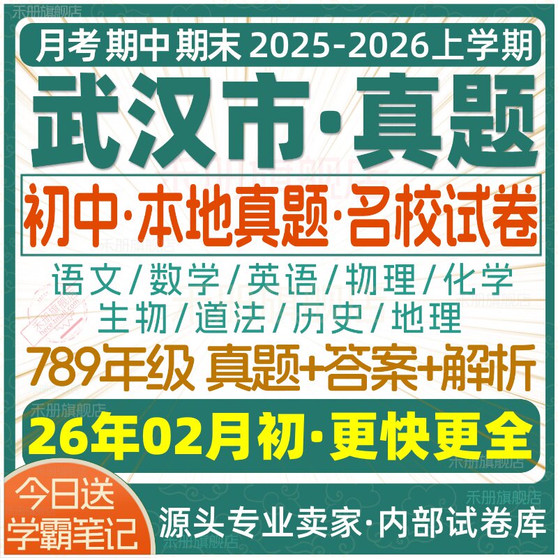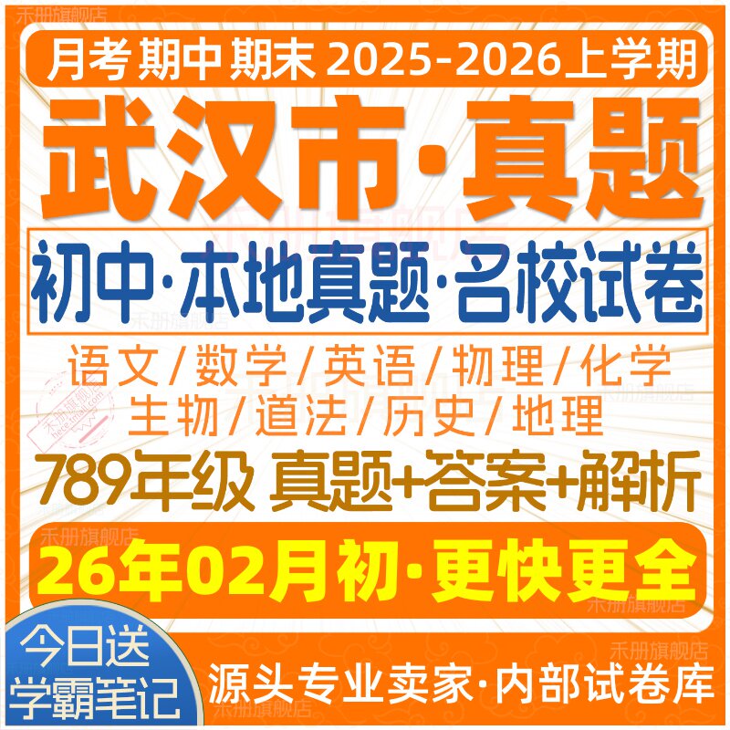 天猫2026新版湖北武汉市初中七八九年级上册下册月考期中期末真题试卷初一初二初三数学语文英语物理化学生物地理历史道法练习题电子版
