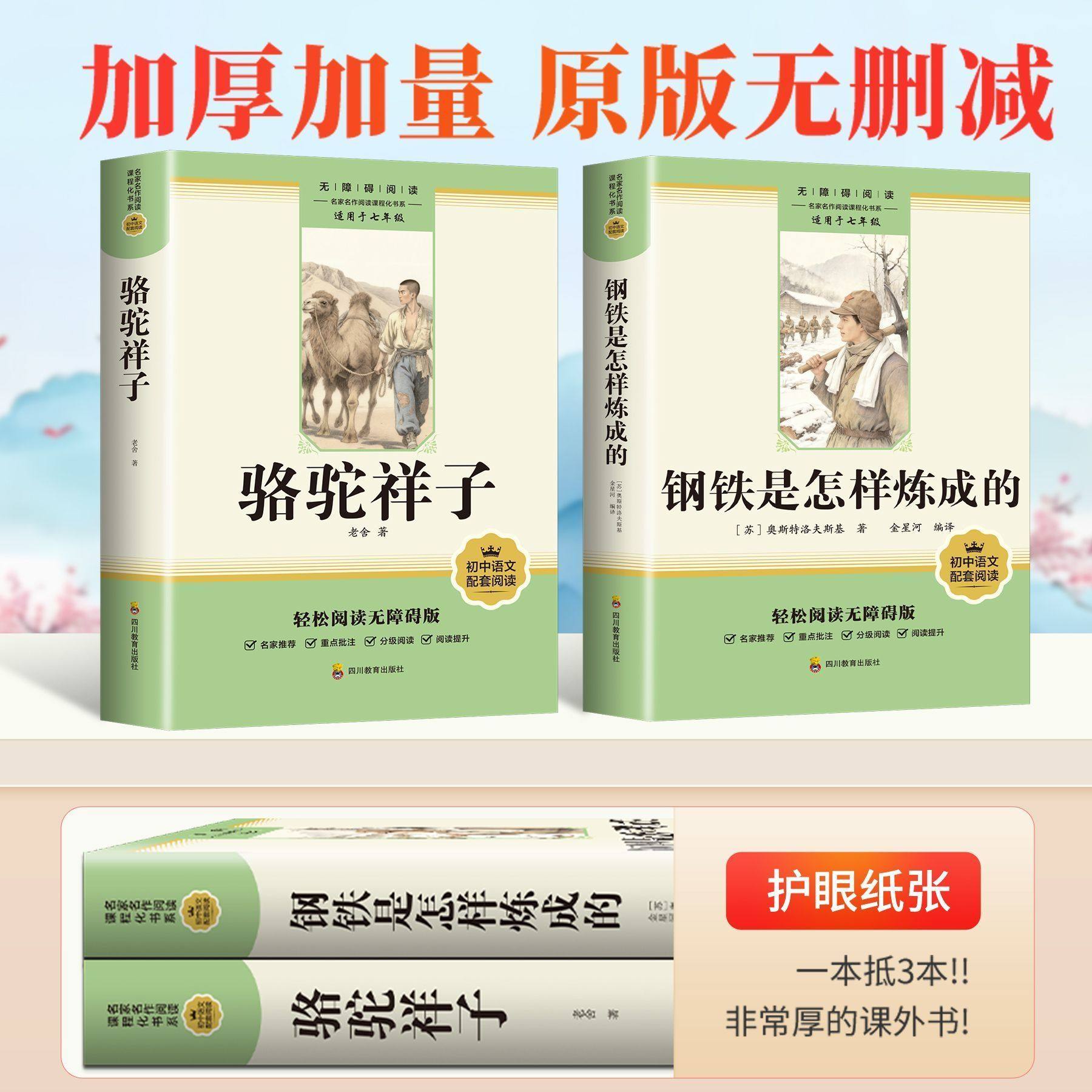 天猫骆驼祥子和钢铁是怎样炼成的正版原著完整版七年级下册必读正版课外书初一课外阅读书籍配套人教版名著老舍朝花夕拾西游记初中生
