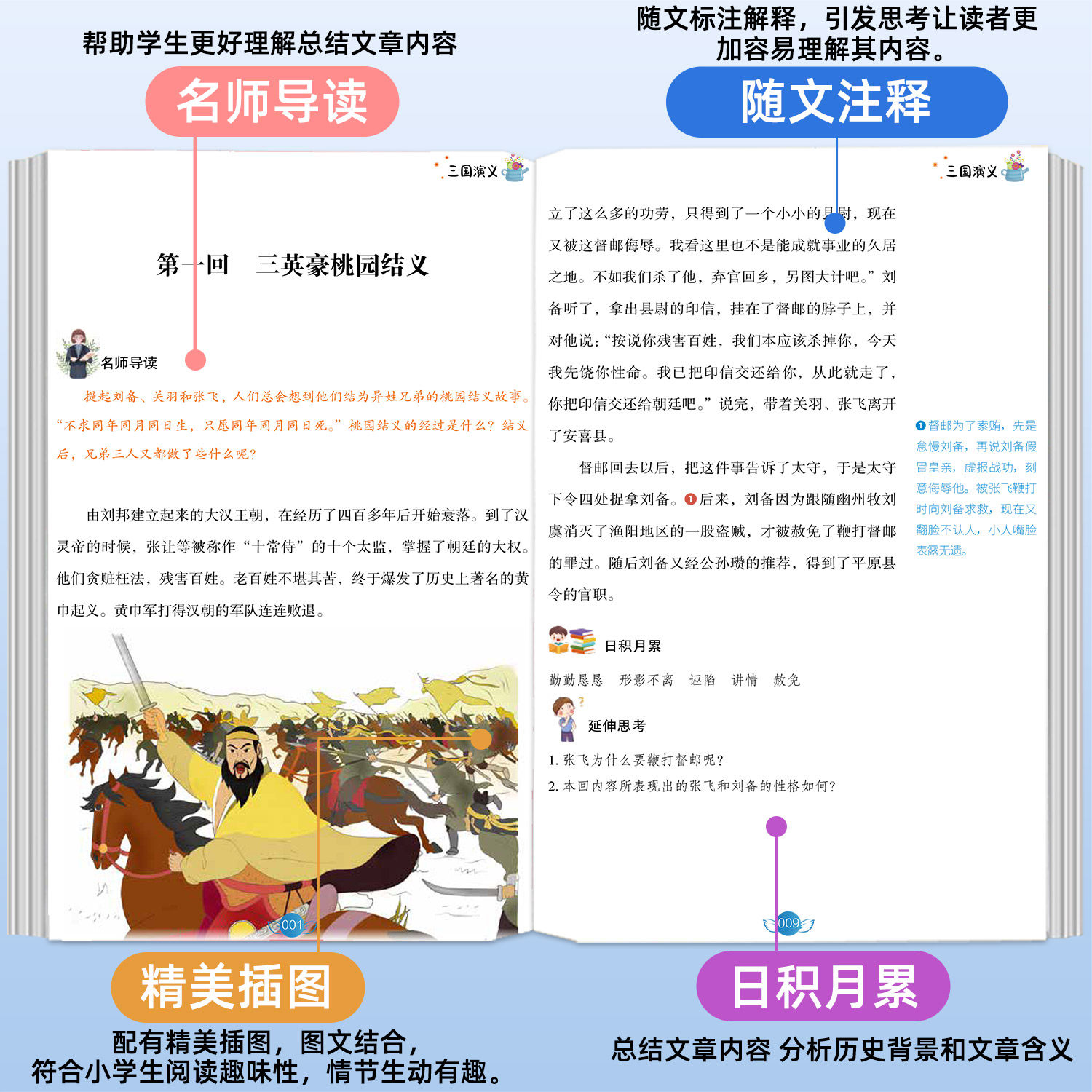 天三国演义经典赏读本 中国古典名著系列 优等生文库 中小学生课外文学读物 专为学生打造的考前赏读系列9-15岁 书籍中国四大名著