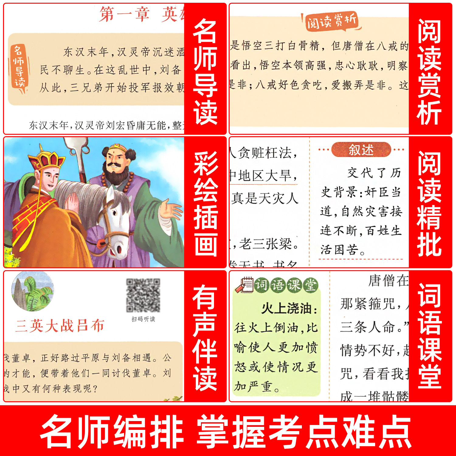 《四大名著》小学生版(全4册)专为五年级学生精心改编,包含《西游记》《三国演义》《水浒传》《红楼梦》,紧扣人教版“快乐读书吧”五年级下册推荐阅读书目。本套书在保留原著精华的基础上,语言通俗易懂,情节生动有趣,配有精美插图和重点注释,帮助小学生轻松理解经典内涵。内容涵盖忠义、智慧、勇气与成长等主题,既传承中华优秀传统文化,又契合儿童阅读习惯。正版印制,纸张环保,是孩子课外阅读、提升语文素养的理想之选,助力学生在阅读中开阔视野、陶冶情操。