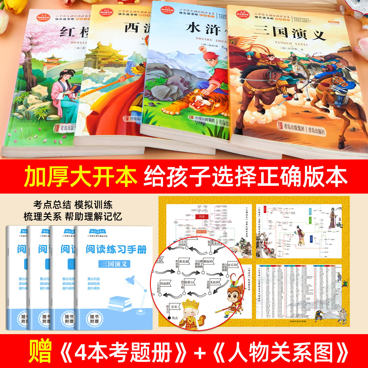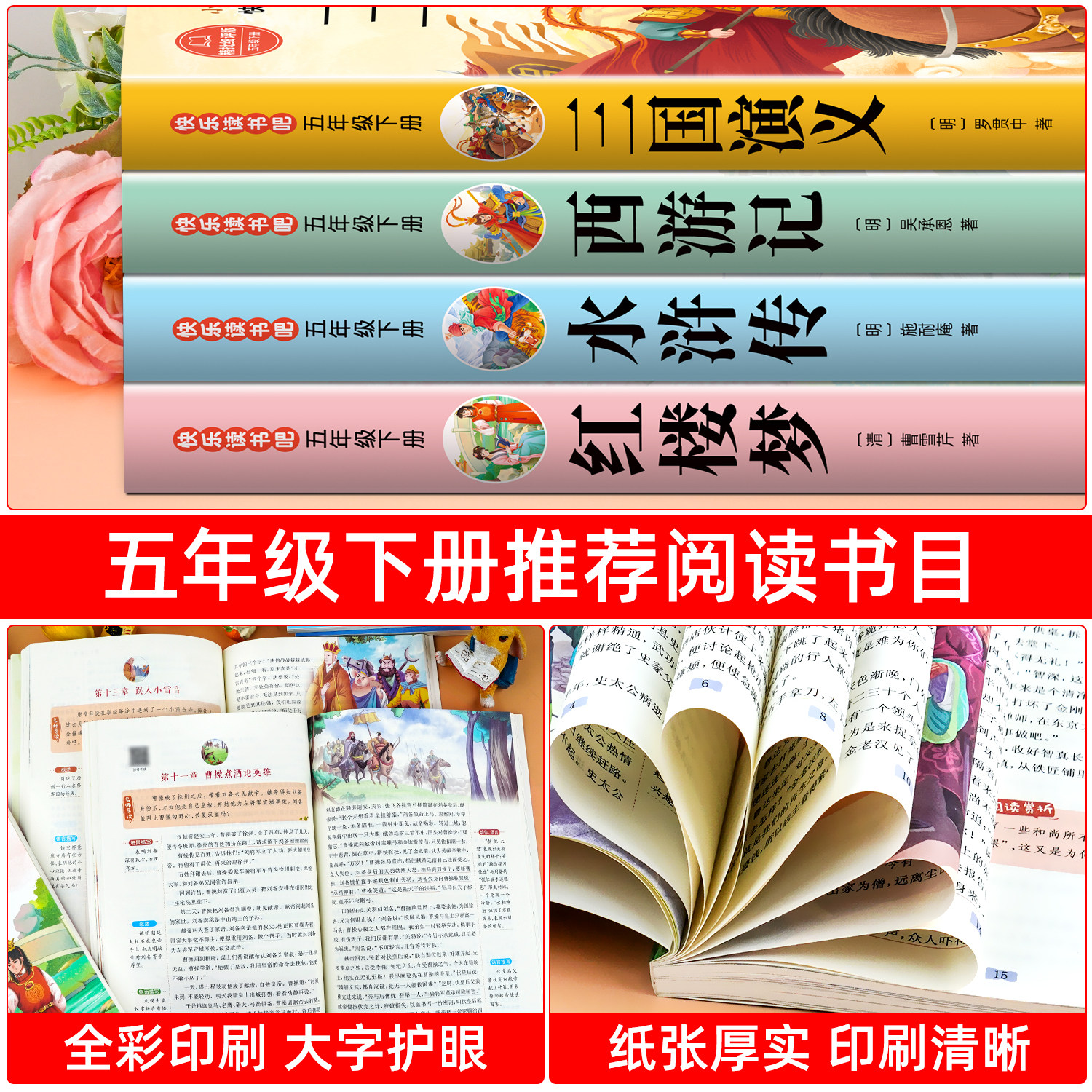 四大名著原著正版五年级下册必读正版的课外书三国演义西游记小学生版青少年版本快乐读书吧五下阅读书籍中国红楼梦水浒传全套书目