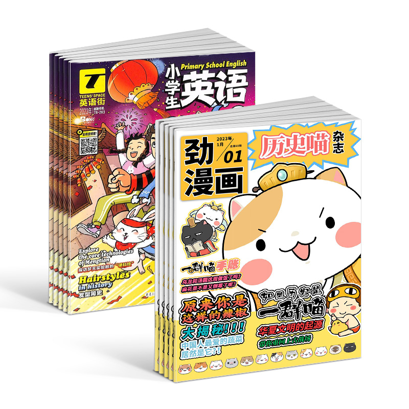 天猫历史喵+英语街小学生英语杂志组合 2026年1月起订 全年订阅 提升素养为主的辅助读物 小学学习辅导期刊书籍 杂志铺