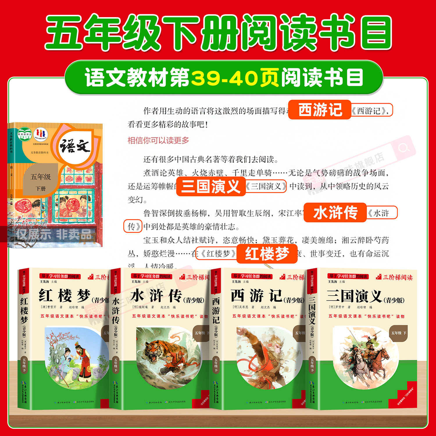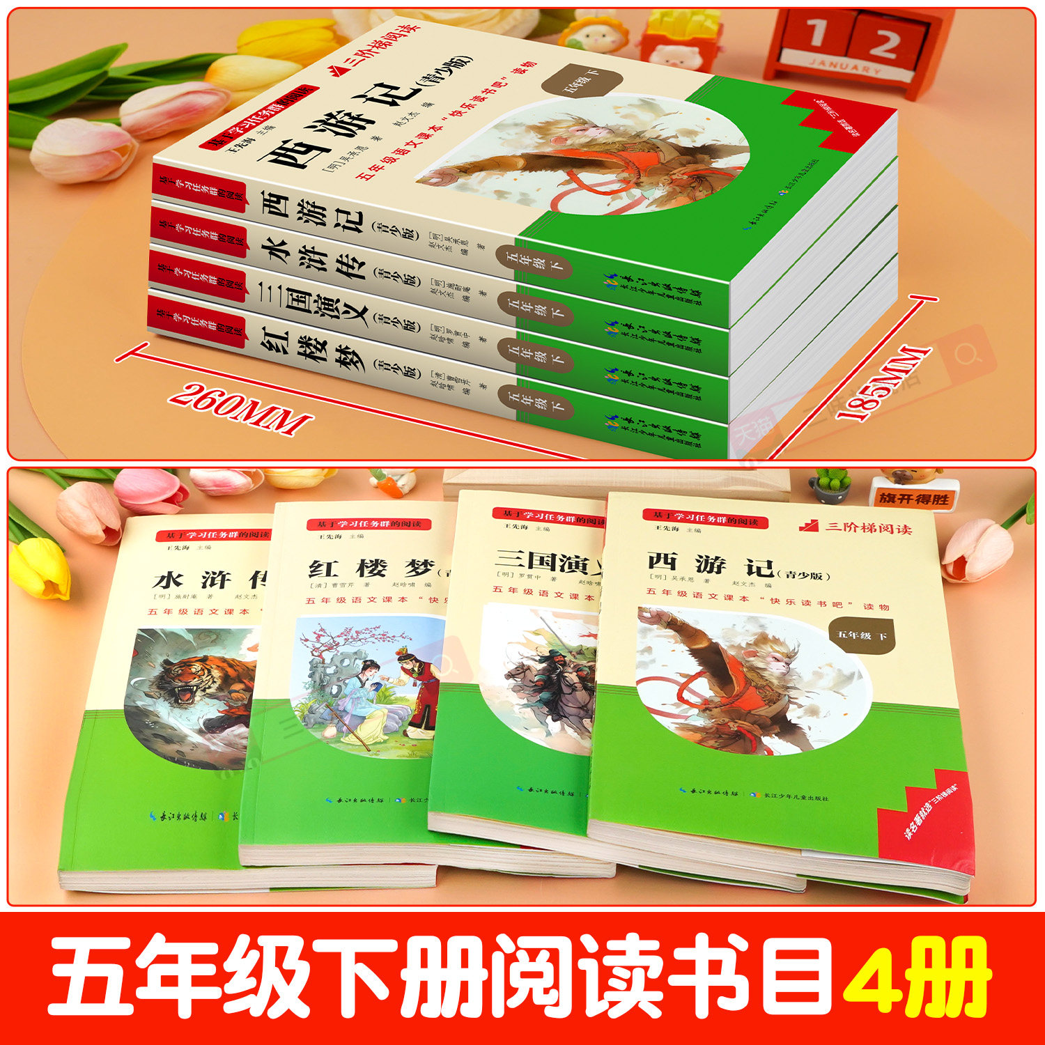 四大名著原著正版五年级下册必读正版的课外书三国演义西游记小学生版青少年版本快乐读书吧五下阅读书籍中国红楼梦水浒传全套书目