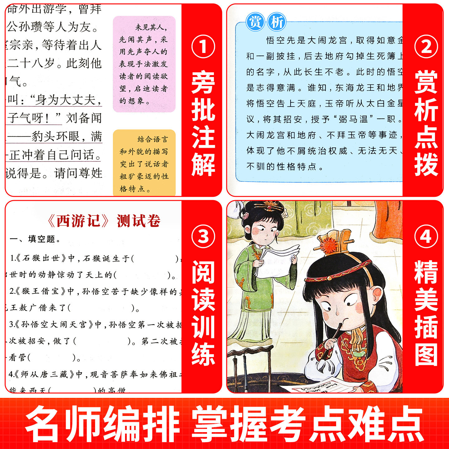 优翼漫画常考四大名著1001问正版四大名著人物关系考点速记 聚焦中小学高频考点覆盖西游记水浒传三国演义红楼梦 中小学生课外阅读
