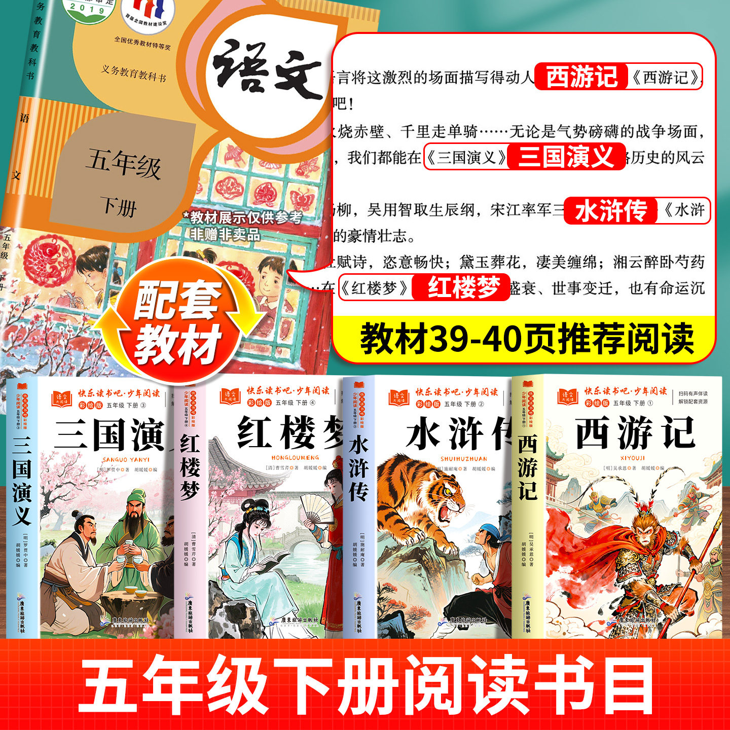 四大名著原著正版五年级下册必读正版的课外书三国演义西游记小学生版青少年版本快乐读书吧五下阅读书籍中国红楼梦水浒传全套书目