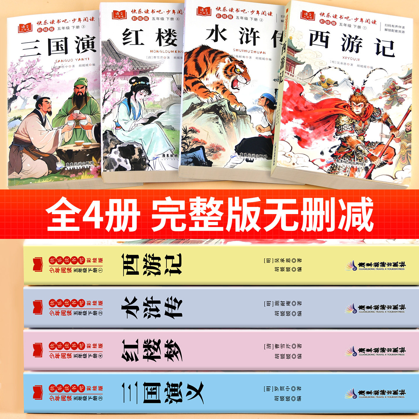 天四大名著原著正版五年级下册必读正版的课外书三国演义西游记小学生版青少年版本快乐读书吧五下阅读书籍中国红楼梦水浒传全套书目