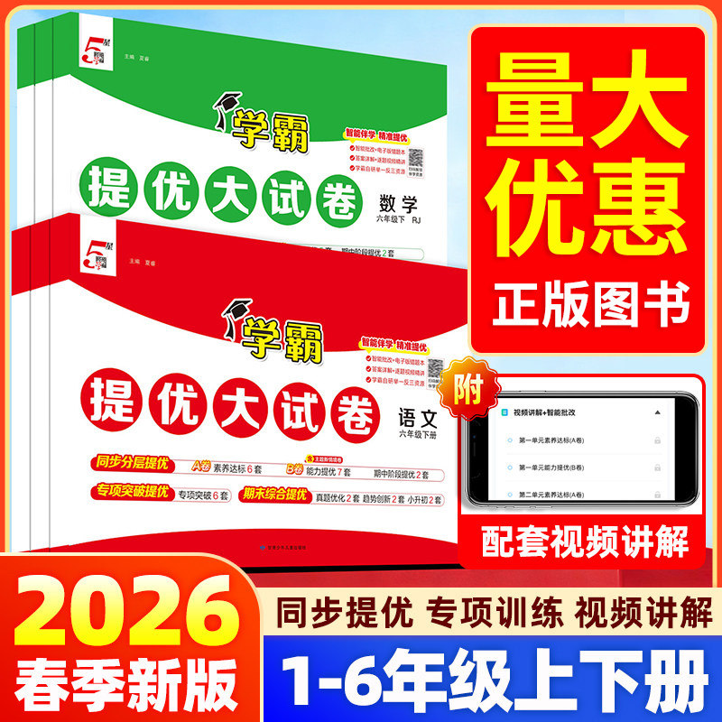 2026春《学霸提优大试卷》专为江苏地区一二三年级学生设计,涵盖语文、数学、英语三科,分上册、下册,适配人教版、苏教版、北师大版及译林版教材,实现五星同步训练。试卷紧扣新课标要求,题型丰富,难度分层,注重基础知识巩固与综合能力提优,包含单元测、期中期末卷及专项训练,帮助学生系统复习、查漏补缺。题目设计科学严谨,贴近江苏本地教学实际,是学生课后练习、阶段检测和考前冲刺的理想选择。正版印刷,清晰规范,助力孩子稳步提升学业成绩,轻松应对各类综合考试。