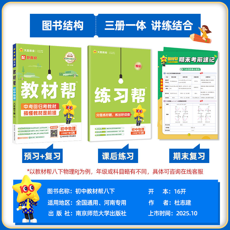 当当网2026版《春初中教材帮》八年级上下册全套教辅,涵盖语文、数学、英语、政治、历史、地理、生物、化学、物理九大学科,紧扣新课标与最新教材内容,系统梳理知识点,突出重点难点,配备典型例题与分层练习,帮助学生夯实基础、提升能力。全书结构清晰,讲练结合,配有详细解析,适合课前预习、课堂同步学习和课后复习。作为权威实用的同步辅导资料,《教材帮》深受师生信赖,是初二学生提升学业成绩的理想助手。当当网正版保障,品质印刷,助力高效学习。