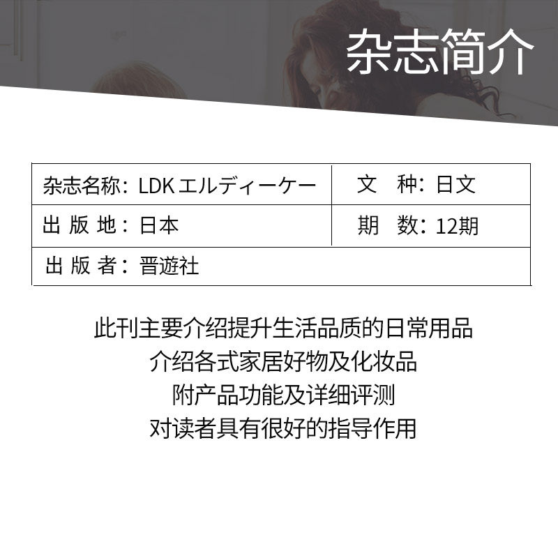 《LDKエルディーケー》(LDK Magazine)是日本知名家居生活用品评测与生活风格杂志,专注于厨房、收纳、清洁、家电等日常家居领域。2025/2026全年12期订阅版涵盖最新产品测评、实用生活技巧与空间美学提案,内容由日本专业团队实地测试撰写,兼具权威性与实用性。每期以高清图文呈现商品性能对比与使用体验,帮助读者理性选购高品质生活用品。杂志语言为日语,适合对日式生活方式、家居设计及高品质日用品感兴趣的读者。订阅全年期刊可系统掌握日本最新生活趋势,是提升居家品质的优质读物,亦适合收藏或作为日语学习参考资料。