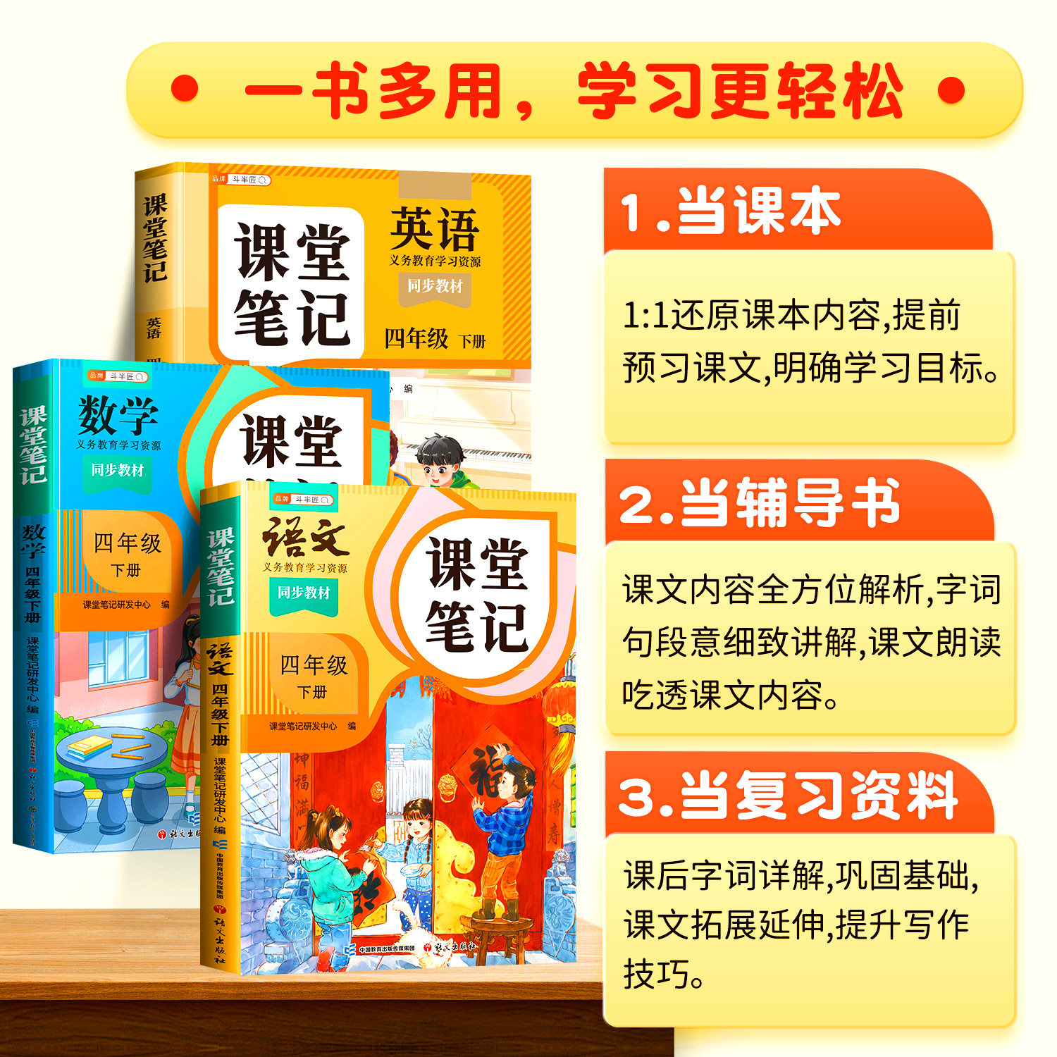 《2026春季适用课堂笔记四年级下册(语文、数学、英语)》是一套专为四年级学生设计的同步学习辅导书,涵盖人教版、苏教版、北师大版等主流教材版本。本书紧扣课本内容,系统梳理知识点,配有重点解析、例题精讲与随堂练习,帮助学生高效预习、复习和巩固所学。语文注重字词句段理解与阅读理解技巧;数学强化概念理解与解题思路;英语聚焦词汇、句型与听力训练。全书结构清晰,图文并茂,融入“学霸笔记”式学习方法,提升学习效率,是小学生夯实基础、提升成绩的理想工具书,适合2026年春季学期使用。