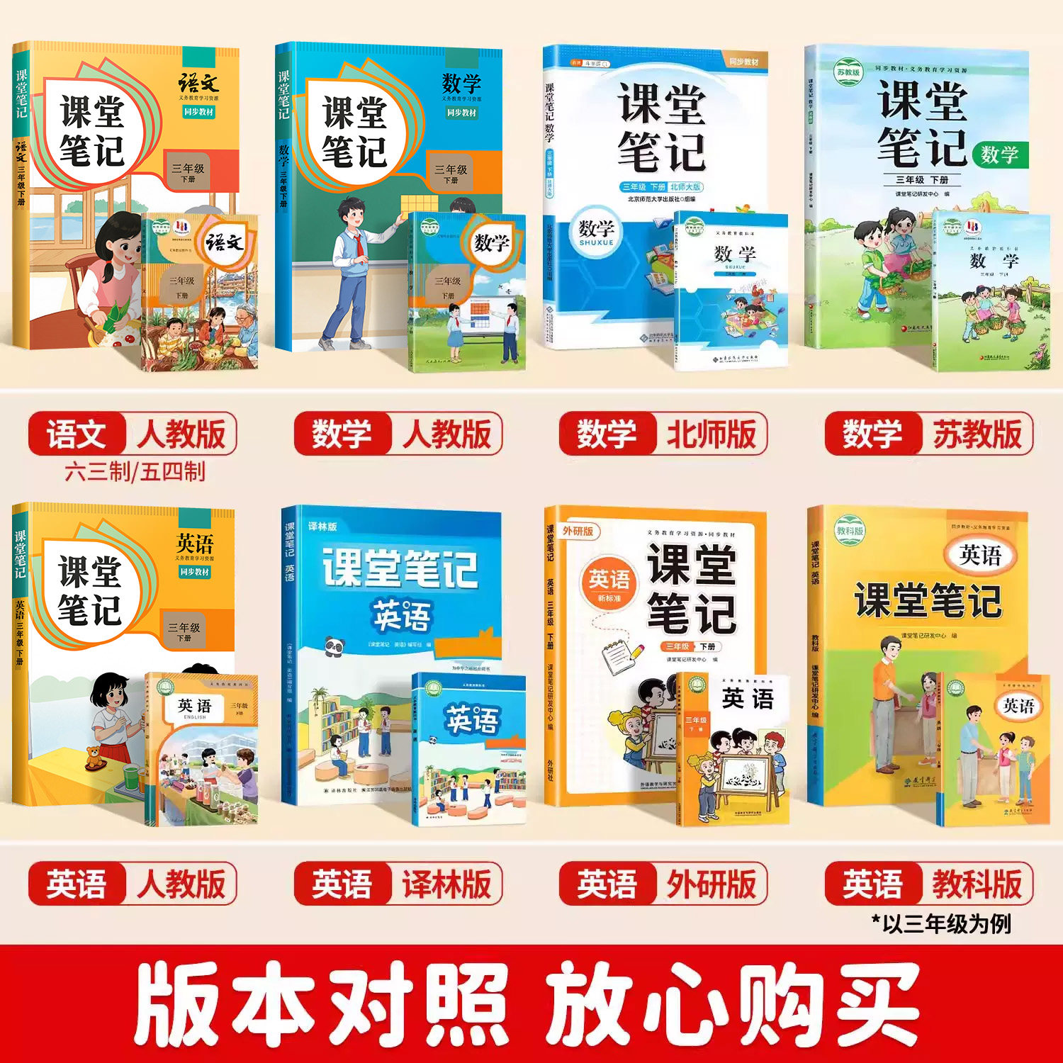天猫2026新版课堂笔记一年级二年级三四五六年级下册上册语文人教版数学英语书小学同步课本新教材预复习人教3下4下全解伴学 随堂笔记