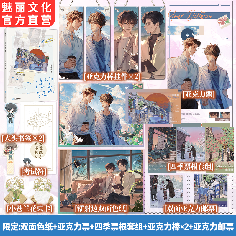 《你的距离》是公子优创作的双男主正版实体小说,现已完结并新增独家番外。作品以细腻笔触讲述两位性格迥异的男性主角从疏离到相知相惜的温暖故事,情感真挚,张力十足。正版印特签版本更附作者亲笔签名,极具收藏价值。新增番外深入刻画角色内心,补全主线未及细节,为读者呈现更完整的情感世界。该书装帧精美,用纸考究,是粉丝不容错过的珍藏之作。无论是剧情深度还是制作品质,均体现匠心诚意,适合喜爱现实向、情感向双男主题材的读者收藏阅读。