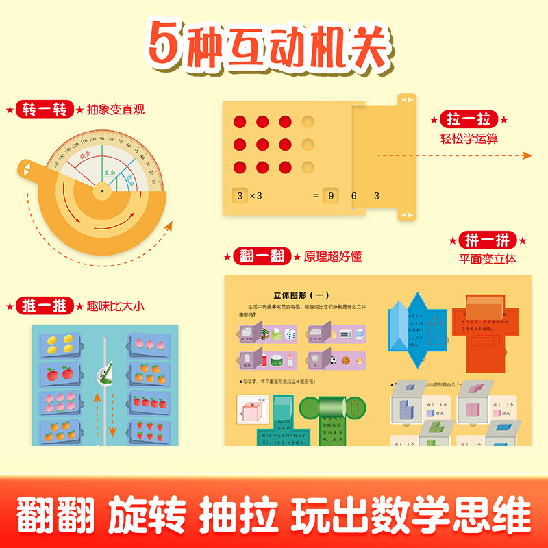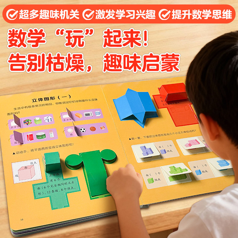 《爱德少儿幼小衔接数学启蒙机关书》专为3-6岁儿童设计,涵盖数感、图形、空间、逻辑、分类、比较、规律、时间八大数学启蒙主题,紧扣幼儿园至小学衔接核心能力。书中巧妙融入立体机关、翻翻卡、滑动轨道等互动设计,让孩子在“玩中学”,通过趣味图解与动手操作,激发观察力、想象力与逻辑思维能力。每页设置专项训练任务,引导孩子主动思考,培养立体思维与问题解决能力。内容由浅入深,形式生动有趣,既是家庭启蒙的得力助手,也是幼儿园教学的优质教具,助力孩子轻松跨越幼小衔接数学关卡,赢在起跑线。