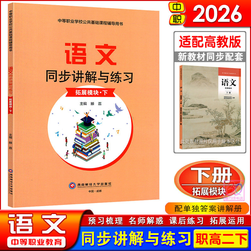 天猫2026中职语文同步讲解与练习基础拓展模块上下册职业模块中等职业学校教科书新教材配套职高语文练习册习题集用书西南财经大学版